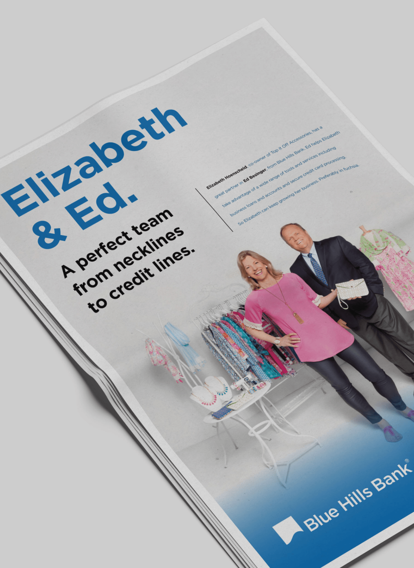 The campaign drove a significant increase in business account inquiries. Capitalizing on this success, Blue Hills Bank secured the high-visibility back cover of The Boston Globe Sunday edition, running a series of three ads to a print circulation of nearly 100,000.